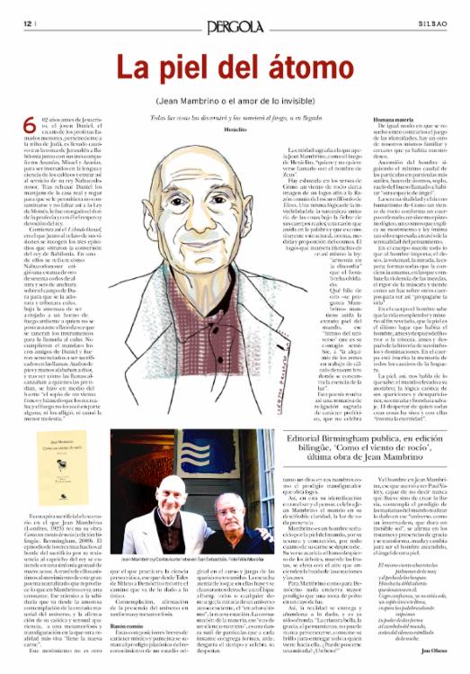 Lorsqu'est venu le moment où les difficultés de la traduction devaient être résolues par un intense dialogue entre Jean Mambrino et Carlos Aurtenetxe les amis qui les entouraient, Félix Maraña (l'éditeur), Jon Obeso (poète et romancier) et Ana Belaisch, ont eu, comme moi, le sentiment enthousiaste que procure la découverte de la vraie Realité. L'effort du traducteur de ne pas trahir les intuitions de son auteur et les subtilités de sa vision, leur ont donné la certitude d'entrer dans les révélations mystérieuses de l'expérience poétique, d'écouter “la petite musique” des choses et le chant profond de chaque être.