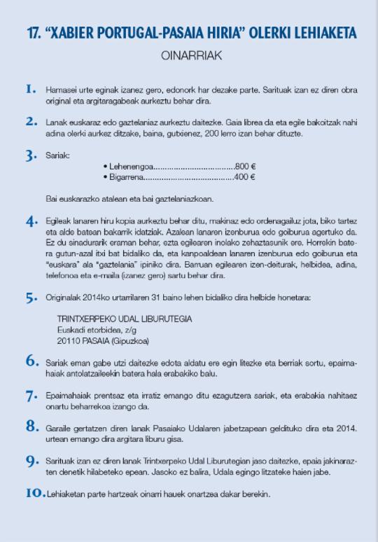 17. "Xabier Portugal-Pasaia Hiria" olerki lehiaketa OINARRIAK
