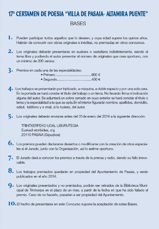 17º Certamen de poesía "Villa de Pasaia-Altamira Puente"BASES